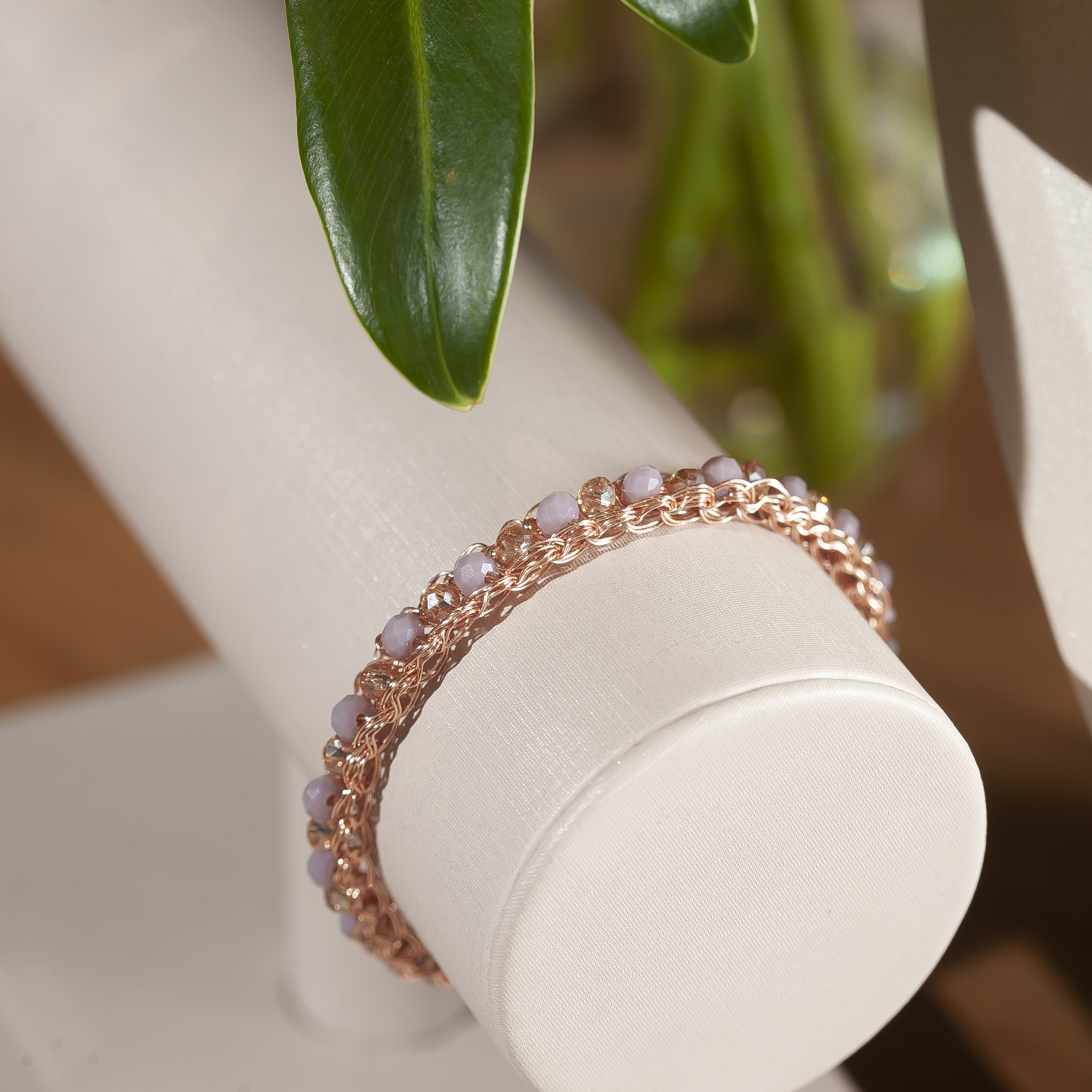 Peças cuidadosamente produzidas em fios de cobre com banho antialérgico em ouro 18k ou paládio. A peça tem seu brilho próprio com cristais, vidrilhos e pedras naturais.