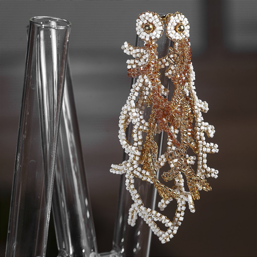 Peças cuidadosamente produzidas em fios de cobre com banho antialérgico em ouro 18k ou paládio. A peça tem seu brilho próprio com cristais, vidrilhos e pedras naturais.