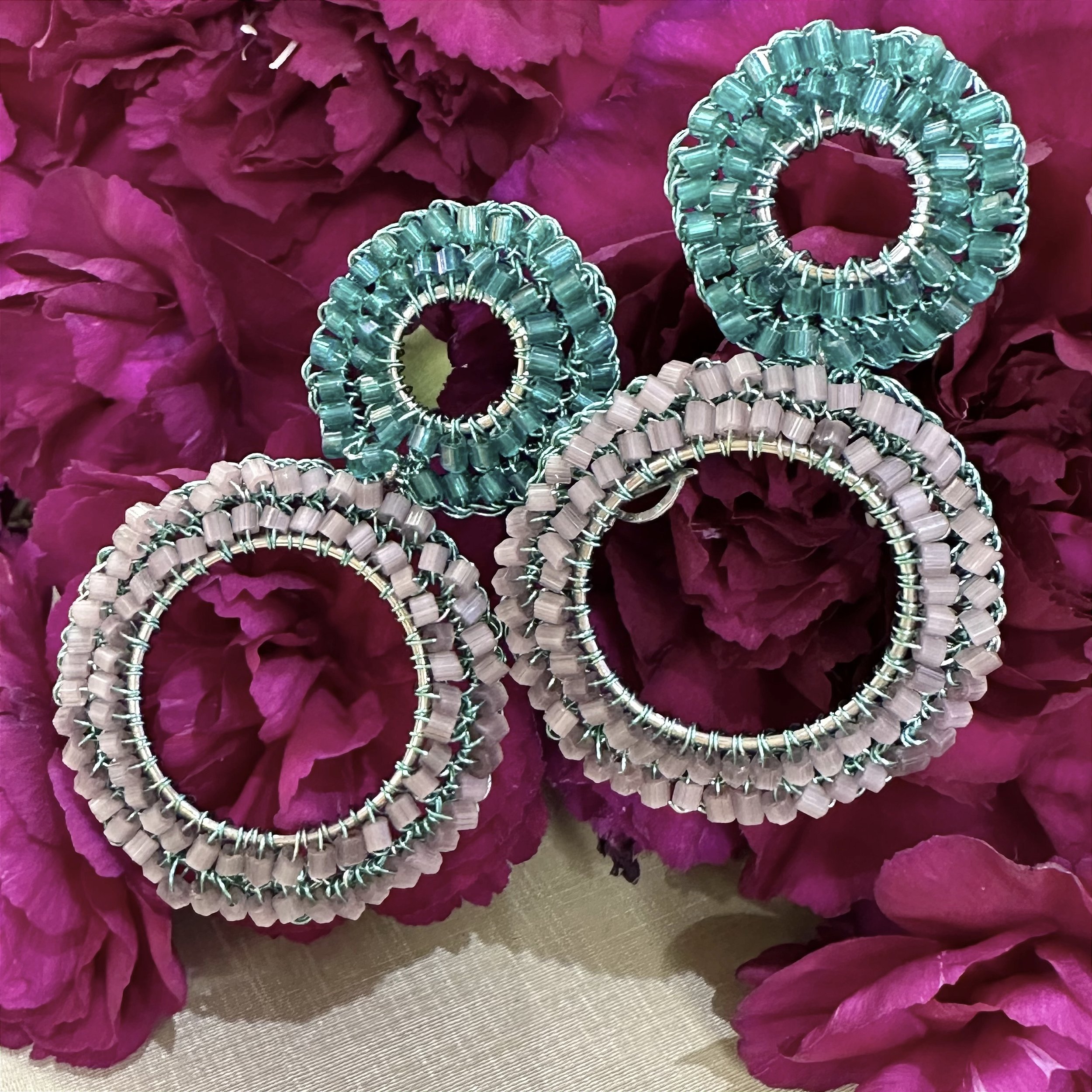 Peças cuidadosamente produzidas em fios de cobre com banho antialérgico em ouro 18k ou paládio. A peça tem seu brilho próprio com cristais, vidrilhos e pedras naturais.