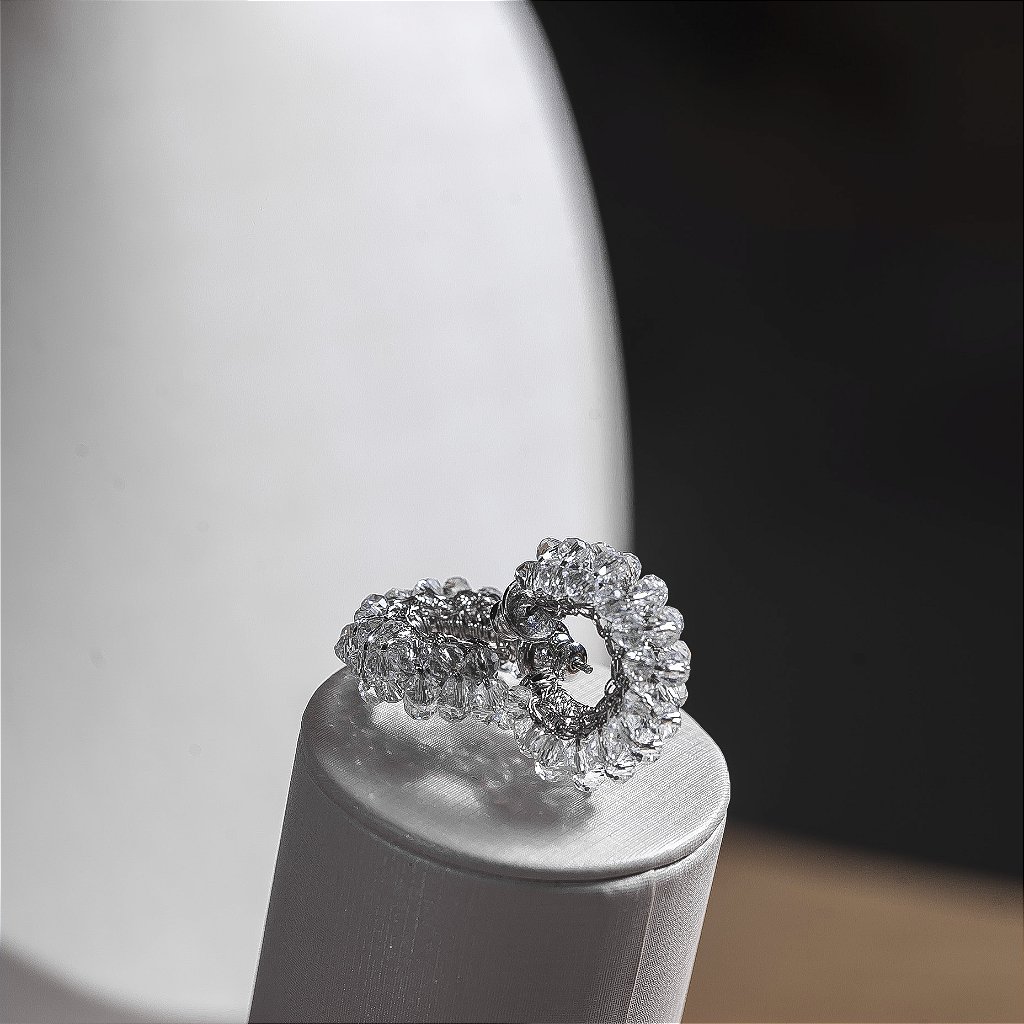 Peças cuidadosamente produzidas em fios de cobre com banho antialérgico em ouro 18k ou paládio. A peça tem seu brilho próprio com cristais, vidrilhos e pedras naturais.