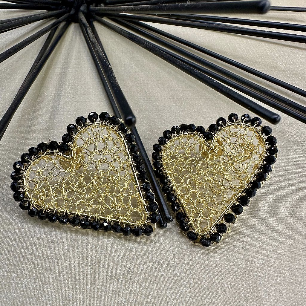 Brinco Coração Tramado Gold Preto