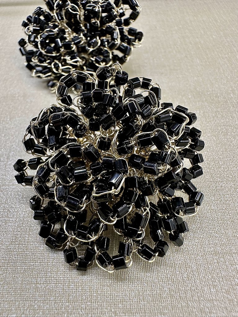 Peças cuidadosamente produzidas em fios de cobre com banho antialérgico em ouro 18k ou paládio. A peça tem seu brilho próprio com cristais, vidrilhos e pedras naturais.
