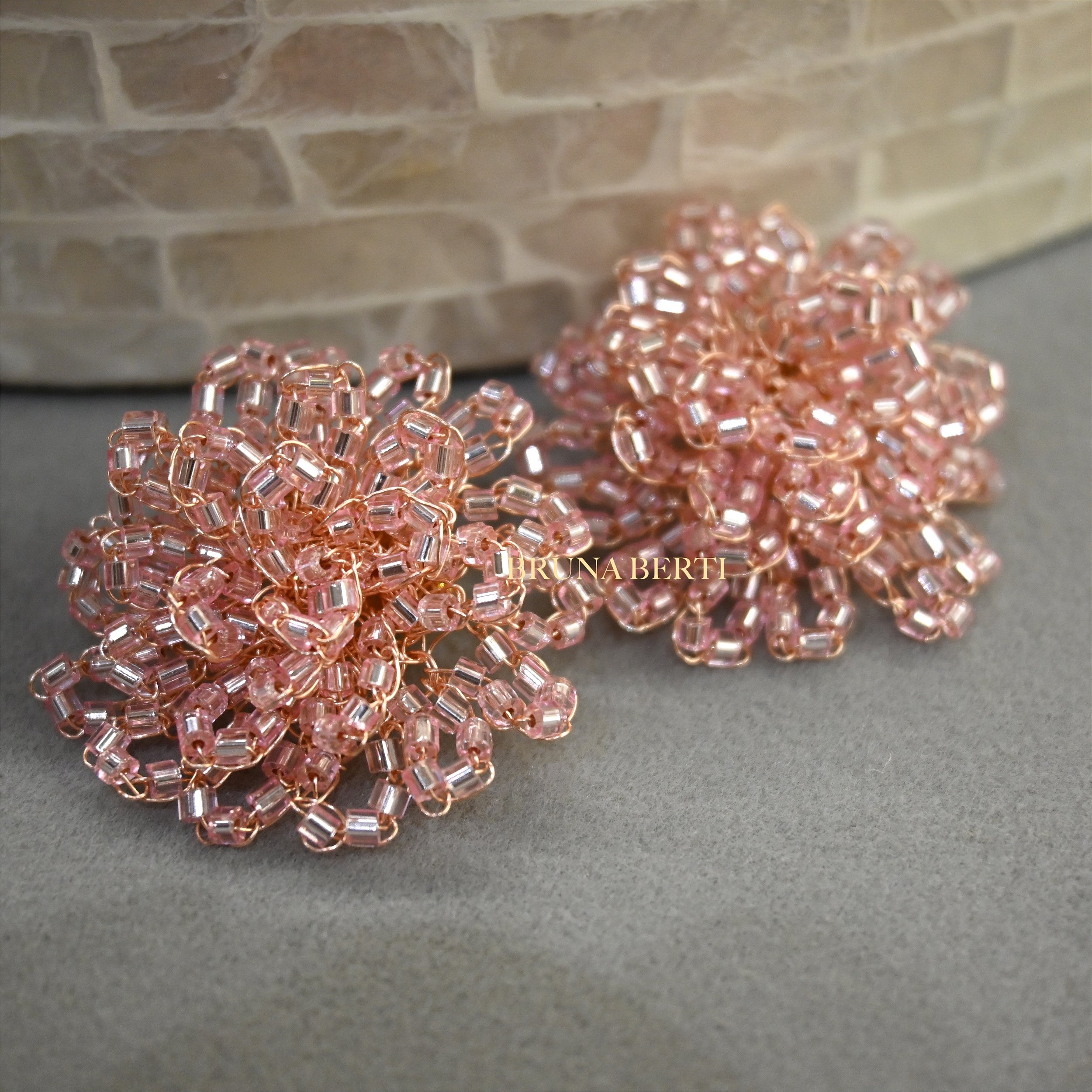 Peças cuidadosamente produzidas em fios de cobre com banho antialérgico em ouro 18k ou paládio. A peça tem seu brilho próprio com cristais, vidrilhos e pedras naturais.