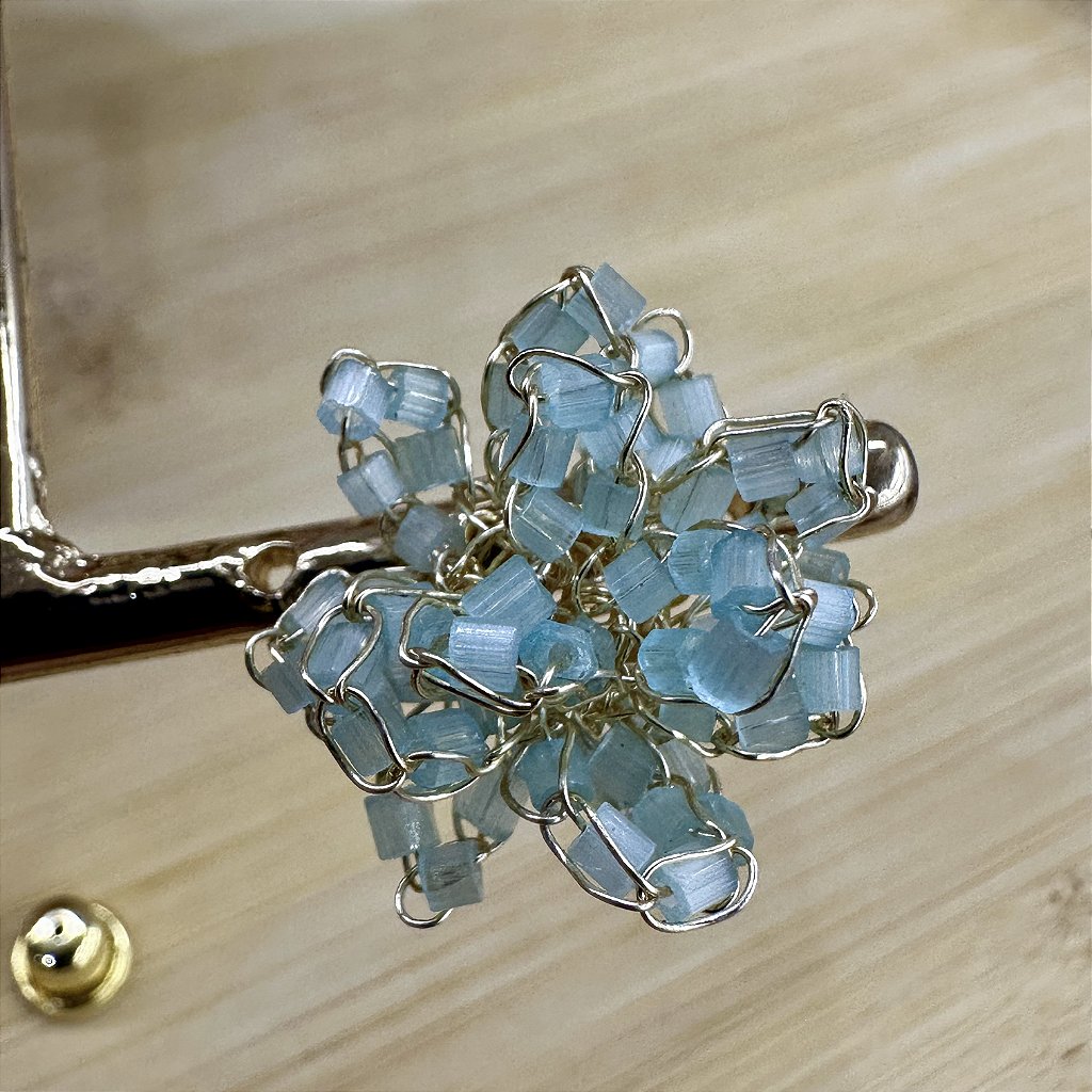 Peças cuidadosamente produzidas em fios de cobre com banho antialérgico em ouro 18k ou paládio. A peça tem seu brilho próprio com cristais, vidrilhos e pedras naturais.