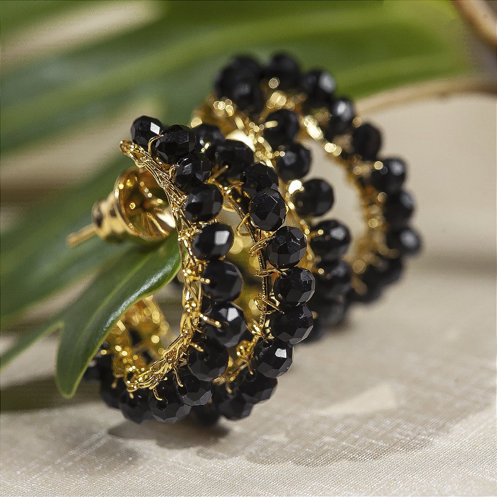 Peças cuidadosamente produzidas em fios de cobre com banho antialérgico em ouro 18k ou paládio. A peça tem seu brilho próprio com cristais, vidrilhos e pedras naturais.