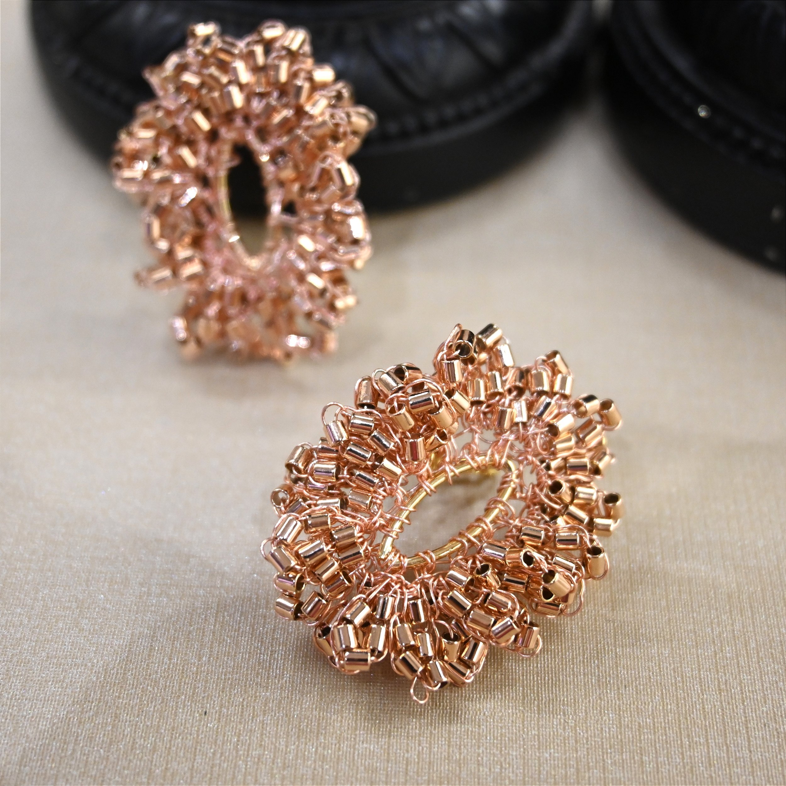Brinco em fio rosê, com vidrilhos rosê gold.